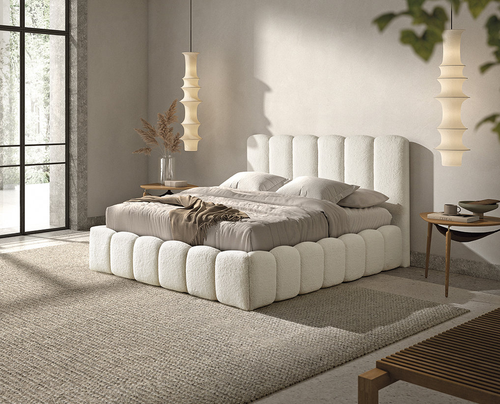 Bubble, una cama tapizada pensada para transformar tu descanso: suave, elegante y diseñada para envolver cada noche en confort.
