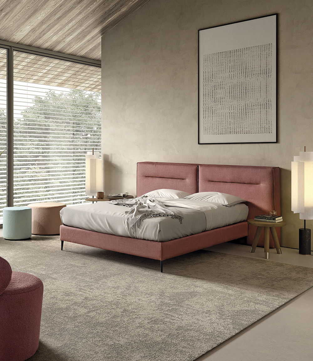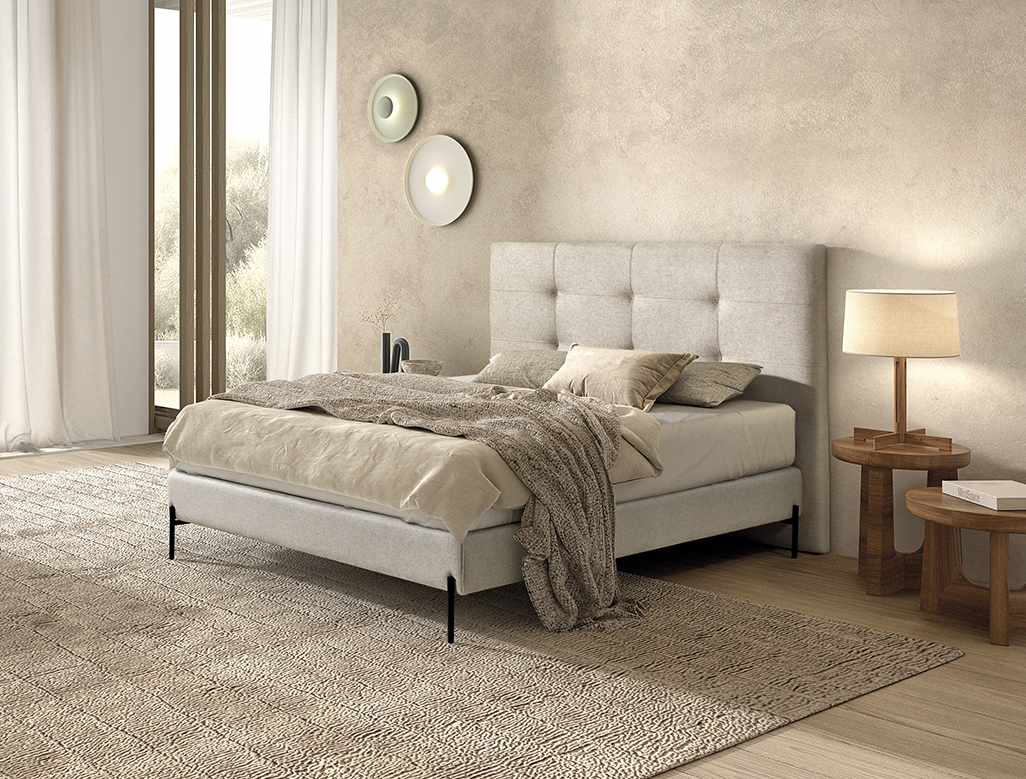 Crear un descanso equilibrado, donde la suavidad de los materiales y el diseño generen armonía y bienestar. Base disponible con pata bombón, cónica y tacón.
